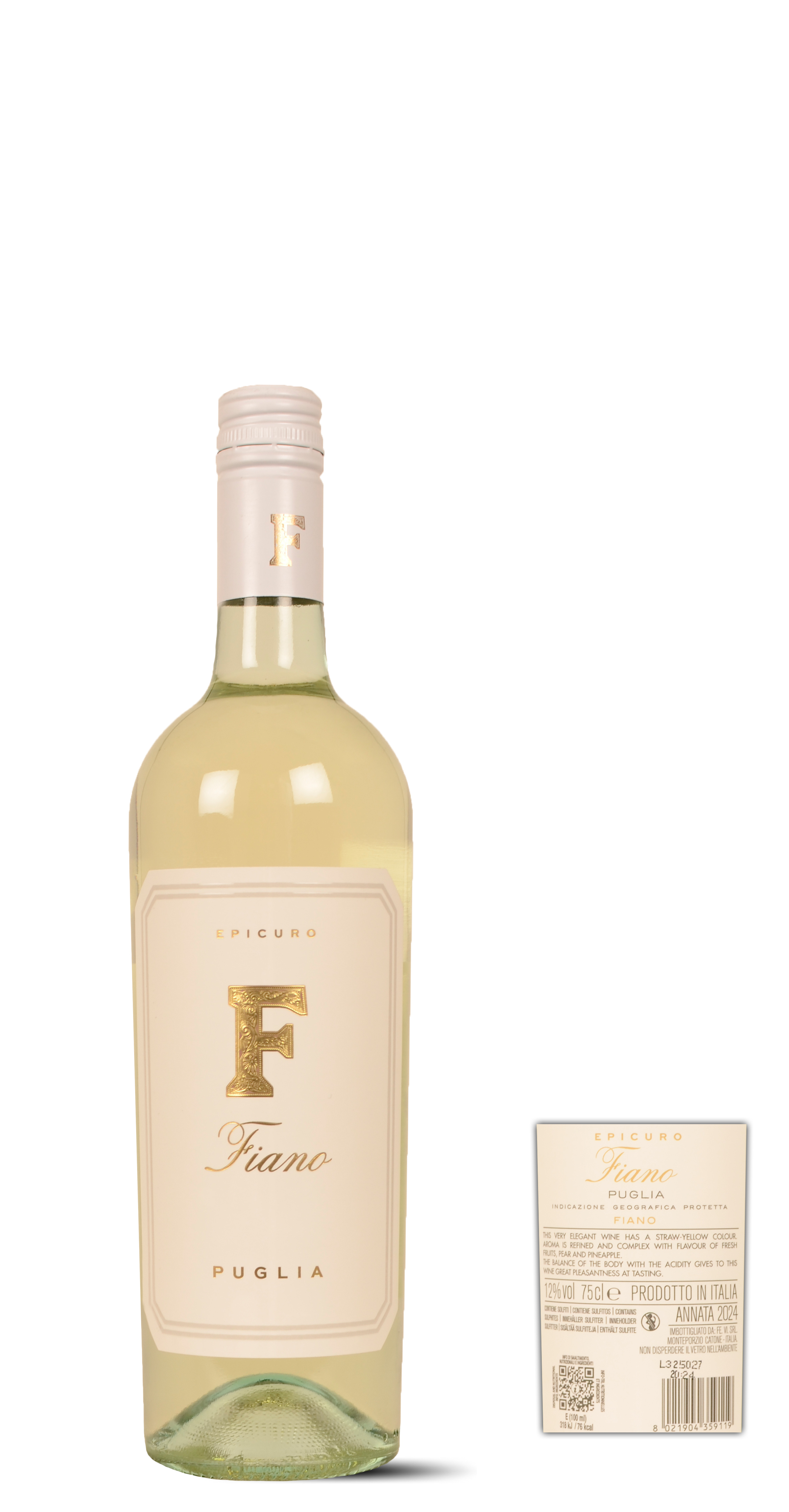 Fiano is an old white grape variety from southern Italy, which adds spiciness and aroma to wines. This particular wine has a beautiful bouquet of pear, apple, lime, pineapple and acacia honey. In the mouth it's fresh and full, juicy and seasoned With a finish that is fulfilled with finesse and elegance. AWARDS: 97 pts Luca Maroni.